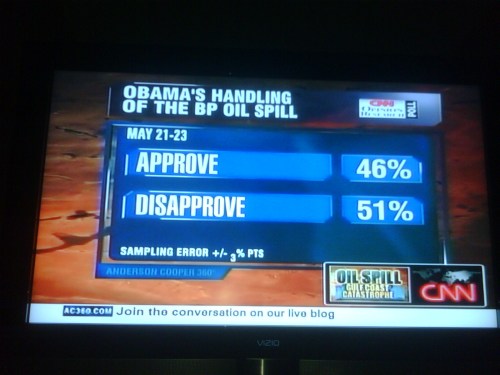 Follow on twitter, now see this Poll. Americans 50-50 on Obama and Oil Spill. It’s still spilling!!!
