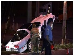 A Corvette ran up a guide wire in Salem early Monday morning.
